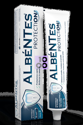 Albentes Protection Descrizione Dentifricio a base di fluoruro di sodio che aiuta a prevenire l'insorgenza della carie e a rinforzare lo smalto dentale. Ideale per l'uso"idiano. Rinforza lo smalto. Protezione carie. Modalità d'uso Lavarsi i denti due volte al giorno fino ad un massimo di tre, minimizzare l'ingerimento e sputare. Componenti Fluoruro di sodio. Avvertenze Tenere fuori dalla portata dei bambini. Evitare il contatto con gli occhi e la pelle lesa. In caso di contatto con gli occhi, sciacquare abbondantemente. Non ingerire. Non utilizzare il prodotto se la confezione non si presenta integra. Si consiglia di lavarsi bene le mani dopo aver usato il prodotto. In caso di ipersensibilità verso uno degli ingredienti non utilizzare il prodotto. Interrompere l'uso in caso di reazioni indesiderate. Non utilizzare nei bambini di età inferiore a 7 anni. Contiene Fluoruro di Sodio (1.470 ppm di Fluoro). Conservazione Da conservare al riparo da fonti di calore, luc...
