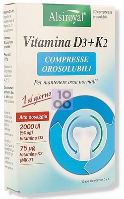 Che cos'è Vitamina D3 e K2? Per donare sostegno alle ossa, ai denti e ai muscoli, l'integratore con Vitamina D3 e K2 è il prodotto che fa per te. Grazie alla sua formula, nel formato da 30 compresse, contribuisce al normale sviluppo di ossa e denti, rinforzando non solo il sistema immunitario ma aiutando a regolare il metabolismo del fosfato e del calcio. Ma vediamo l'integratore in dettaglio. Quali sono i suoi benefici? Questo integratore alimentare Vitamina D3 K2 è costituito da importanti elementi che lavorano in sinergia per il benessere ed il mantenimento dell’apparato muscolo-scheletrico. Nello specifico infatti: aiuta al normale sviluppo di ossa e denti utile al rinforzo del sistema immunitario regola il metabolismo del fosfato e del calcio aiuta alla normale coagulazione del sangue agisce sull'assorbimento del calcio e del fosfato a livello intestinale depon il calcio dalle ossa aiuta al mantenimento del trofismo cartilagineo Tra le componenti di questo integratore...