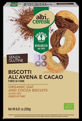 altricereali Biscotti all' Avena e Cacao Senza olio di palma e senza glutine. Ricchi di fibre. Ingredienti * Farina integrale di avena, *zucchero di canna, *farina di riso, *olio di semi di girasole, *uova, *amido di riso, *cacao magro in polvere, *estratto di vaniglia, sale, agenti lievitanti (tartrati di potassio, carbonati di sodio, carbonati di ammonio), antiossidante: *estratti di rosmarino. * Ingredienti biologici. Valori nutrizionali per 100 g per pezzo (11 g) Energia 449 kcal 1885 k J 49 kcal 207 k J Grassi di cui acidi grassi saturi 16, 0 g 2, 2 g 1, 8 g 0, 2 g Carboidrati di cui zuccheri 66, 0 26, 0 7, 3 g 2, 9 g Fibre 5, 0 g 0, 5 g Proteine 7, 7 g 0, 8 g Sale 0, 5 g 0, 06 g Conservazione Conservare a temperatura ambiente, lontano da fonti di calore e dalla luce. Validità a confezione integra: 9 mesi. Formato Confezione da 250 g. Cod. BISAC0025