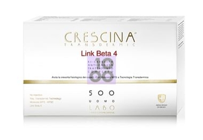 CRESCINA TRANSDERMIC Link Beta 4 TRATTAMENTO COMPLETO Il Trattamento Completo Crescina Transdermic Ri-Crescita Link Beta-4 e Transdermic Anti-Caduta è un trattamento ad uso topico di impiego cosmetico che unisce in un’unica confezione i due tipi di fiale. Crescina Transdermic Ri-Crescita Link Beta-4 (fiale ambra) è un trattamento ad uso topico di impiego cosmetico per la crescita fisiologica dei capelli con Tecnologia Transdermica che favorisce la penetrazione degli attivi, coadiuvati da 3 enhancer, sia attraverso gli osti follicolari che attraverso tutta la superficie del cuoio capelluto. La presenza di Link Beta-4 crea un legame biologico tra le 7 molecole MPS e il complesso HFSC per coadiuvare la crescita fisiologica del capello. Ulteriori attivi presenti: complesso Ri-Crescita; 3 enhancer. Per cuoio capelluto diradato. Indicata nei casi di diradamento dipendente da cause fisiologiche e non patologiche. Crescina Transdermic Anti-Caduta (fiale incolore) unisce ai principi attivi di base (Idrossiprolina, Acido Aspartico, Attivatore Enzimatico e Taurina) e agli attivi Hydrolyzed Yeast Protein e Acetyl Tetrapeptide-3, utili a rinforzare i capelli alla radice (test in vitro sugli attivi), 3 enhancer per coadiuvarne la penetrazione nel sistema pilifero e nel cuoio capelluto. La formula è arricchita con il complesso HSSC. Il Trattamento Completo che unisce i due preparati è indicato nei casi di diradamento dipendente da cause fisiologiche e non patologiche associate a caduta dei capelli. Avvertenze Non agisce sui follicoli completamente atrofizzati. Conservazione Conservare in luogo fresco ed asciutto, a temperatura ambiente. Formato In formule specifiche per uomo e per donna. Dosaggi disponibili: 200, 500 e 1.300 nei formati da 10+10 e 20+20 fiale. (cod.) 03680 / 03681 / 03682 / 03683 / 03684 / 03685 / 03686 / 03687 / 03688 / 03689 / 03690 / 03691