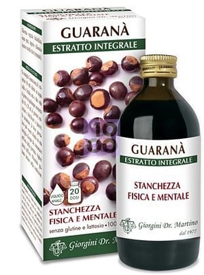 GUARANÀ ESTRATTO INTEGRALE Descrizione Integratore alimentare a base di estratto integrale di guaranà. Il guaranà svolge un'azione tonica utile per contrastare la stanchezza fisica e mentale, promuove l'equilibrio del peso corporeo stimolando il metabolismo, in particolare favorendo quello dei lipidi. Questo estratto è concentrato e contiene l'intero fitocomplesso della pianta. L'efficacia e la qualità del prodotto sono garantite dall'estrazione sottovuoto e a bassa temperatura che permette di preservare integri tutti i principi attivi e nutritivi della pianta. L'eventuale presenza di resine e oli essenziali in superficie e/o di sedimento sul fondo del prodotto sono garanzia di qualità. Infatti essi costituiscono le frazioni insolubili del fitocomplesso. Per questo motivo si raccomanda di agitare ogni volta prima dell'uso. Ingredienti Glicerina vegetale bidistillata, acqua pura, guaranà (Paullinia cupana) semi. Senza glutine e senza lattosio Caratteristiche nutrizionali...