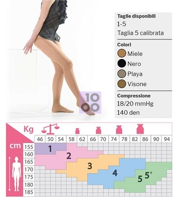 Kàmila Support Mabel 140 Descrizione Collant 140 den, 18/20 mm Hg. Elegante, setoso ed efficace. Con mutandina contenitiva e raffinato ricamo a bordo coscia. Con punta rinforzata per una maggiore durata. Modalità d'uso Attenzione ad anelli ed unghie. Indossare i guanti in gomma o monouso e, stando sedute, arrotolare il capo infilandolo dalla punta e portare verso l'alto prima una gamba, poi l'altra, dopo averlo fatto aderire alla caviglia. Posizionarlo sui fianchi ed in vita. Istruzioni per il lavaggio Per aumentare la durata dei capi Kamila e mantenerne la qualità, si raccomanda di lavare i capi con acqua tiepida e sapone neutro, senza torcere. Asciugare i capi in piano, lontani da fonti di calore. Composizione 76% polyamide, 24% elastam. Formato Confezione da 1 pezzo. Taglia: dalla 2° alla 5°. Colore: visone. Cod. KSMB140ML3 / KSMB140ML4 / KSMB140ML5