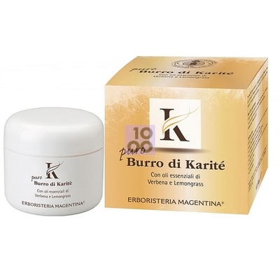 Puro Burro di Karitè Descrizione Favorisce un’azione deodorante, purificante e antisettica quando applicato sulla pelle. È ideale se impiegato come maschera rimpolpante e nutriente per il viso o come burro idratante per le labbra. Si può anche usare per preparare uno scrub fatto in casa. Se spalmato sulle mani, aiuta a proteggere la pelle dai climi rigidi: basse temperature e venti forti. Si può anche usare per massaggi per associare l’azione emolliente a quella aromatica degli oli essenziali. Principi attivi: