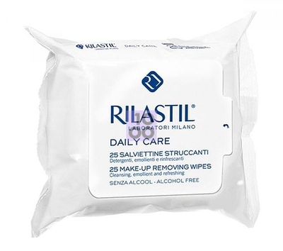 RILASTIL SALVIETTINE STRUCCANTI BIPACKSalviettine imbevute con una delicata emulsione detergente, adatta a tutti i tipi di pelle, anche le più sensibili. Detergono con dolcezza, lasciando la pelle morbida, idratata e leggermente profumata. Non contengono alcool, sono a p H fisiologico. Modalità d'utilizzo Applicare ogni volta che si desidera detergere la propria pelle dal trucco o da altre impurità. Formato Confezione da 25 pezzi. Cod.2V
