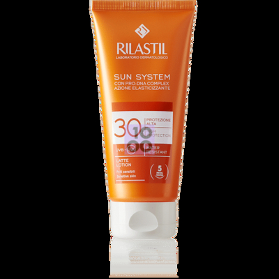 RILASTIL SUN SYSTEM LATTE PROTEZIONE ALTA SPF 30 Emulsione fluida dalla texture vellutata e facilmente spalmabile, adatta sia per il viso che per il corpo. Caratteristiche Garantisce una protezione ad ampio spettro dalle radiazioni UVB-UVA (protezione alta) Previene l’insorgenza di scottature ed eritemi solari Protegge la bellezza della pelle anche contro l’invecchiamento cellulare precoce (Pro-DNA Complex) Idrata, lenisce e previene i rossori Dona alla pelle un’abbronzatura dorata ed uniforme Indicazioni Fototipi chiari e pelli sensibili Esposizione in caso di prolungato irraggiamento solare Plus Ipoallergenico* Testato per Nichel, Cobalto, Cromo, Palladio e Mercurio** Secure pack Non comedogenico Senza parabeni, coloranti, alcool e derivati del grano ** Ognuno inferiore a una parte per milione. Piccole quantità possono essere responsabili di sensibilizzazione cutanea. * Prodotto formulato per ridurre al minimo il rischio di allergia. Modalità d'uso Prima di esporsi al sole spalmare uniformemente il latte sulle zone interessate, in particolare sui punti più vulnerabili (naso, orecchie, spalle, ginocchia, seni, dorso dei piedi). Ripetere l’applicazione ogni 3-4 ore, oppure ogni volta si ritenga che il prodotto possa essere stato rimosso da una azione fisica (asciugandosi con una spugna, strofinandosi sulla sdraio, sulla sabbia, ecc.). Componenti Aqua (Water), Ethylhexyl Methoxycinnamate, C12-15 Alkyl Benzoate, Methylene bis-benzotriazolyl Tetramethylbutylphenol, Cetearyl Alcohol, Bis-Ethylhexyloxyphenol Methoxyphenyl Triazine, Glycerin, Butyl Methoxydibenzoylmethane, Diethylhexyl Carbonate, Triacontanyl PVP, Titanium Dioxide (nano), Bis-PEG/PPG-16/16 PEG/PPG-16/16 Dimethicone, Ceteareth-25, Glyceryl Stearate, PEG-100 Stearate, Caprylyl Methicone, Cyclopentasiloxane, Cetearyl Isononanoate, Phenoxyethanol, Decyl Glucoside, Caprylic/ Capric Triglyceride, Peucedanum ostruthium Leaf Extract, Buddleja davidii leaf Extract, Artemisia umbelliformis Extract, Pinus pinaster Bark/ Bud Extract, Tocopheryl Acetate, Bisabolol, Oryzanol, Propylene Glycol, Dimethicone, Hydroxyethylcellulose, Aluminum Stearate, Polyhydroxystearic Acid, Xanthan Gum, Alumina, Diglycerin, o-Cymen-5-ol, Ethylhexylglycerin, Sodium Dehydroacetate, Sodium Benzoate, Potassium Sorbate, Disodium EDTA, Parfum (Fragrance). Formato Tubo da 100 ml Cod. I28V07940