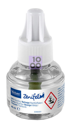 Virbac Zenifel Ricarica Descrizione Ricarica per diffusore di ferormoni calmanti per aiutare a controllare comportamenti inappropriati dei gatti. Composizione Analogo della frazione F3 dei feromoni facciali del gatto 3, 33%. Eccipiente q.s. 100%. Diffusore è in materiale plastico non infiammabile prodotto in E.U. Modalità d'uso 1. Svitare il tappo dalla ricarica (se necessario, usare un panno per facilitare l'apertura) e inserirla nel diffusore. 2. Inserire il diffusore in una presa elettrica in posizione verticale. Se necessario, ruotare il diffusore. Il flacone deve essere sempre sotto la spina. ZENIFEL Diffusore deve essere inserito in una presa a muro 220-240 V in modo continuativo per la durata consigliata di utilizzo. Avvertenze Tossico per gli organismi acquatici con e etti di lunga durata. Non disperdere nell'ambiente. Raccogliere il materiale fuoriuscito. Smaltire il prodotto/recipiente in conformità alle normative nazionali. Ogni flacone dura circa 6 settimane. Tuttavia, la circolazione dell'aria, la posizione, la temperatura e l'umidità possono influenzare la velocità di diffusione. Per ottimali condizioni d'utilizzo, sostituire la ricarica ogni 6 settimane. Per pulire il diffusore, utilizzare un panno asciutto. Lavare le mani dopo la manipolazione. Non appoggiare la ricarica o il tappo direttamente su superfici delicate (verniciate, rivestite, plastiche, ecc.). Il diffusore potrebbe avere un lieve odore simile a quello di un riscaldatore elettrico in particolare quando la polvere si accumula su di esso. Potrebbe comparire un piccolo fil di fumo, che non comporta alcun rischio. Si possono verificare una colorazione giallo-marrone della soluzione presente nel flacone così come macchie sulla piastra in ceramica. Questo non ha alcun impatto sul funzionamento del dispositivo. Non trasportare in aereo. La sovrapressione causata dal trasporto aereo induce perdite. Cambiare il dispositivo elettrico dopo 6 mesi di utilizzo ininterrotto o dopo l'utilizzo di 4 ricariche. Conservazione Conservare a temperatura ambiente. Validità a confezionamento intero: 24 mesi. Formato Flacone da 48 ml. Cod. 308130