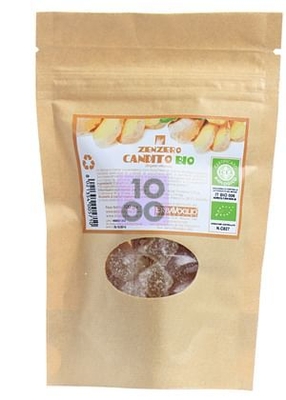 ZENZERO CANDITO BIO Descrizione Zenzero caramellato con zucchero di canna biologico grezzo e poi lasciato essiccare in cristalli di zucchero fino a perdere collosità. Viene poi fatto leggermente asciugare ed avvolto in zucchero in polvere. Senza aggiunta di additivi e conservanti. Ingredienti Cubetti di Zenzero*, Zucchero di canna grezzo*. * Da agricoltura biologica controllata. Informazioni nutrizionali per 100 g: Energia 353 kcal, Proteine 0 g, Carboidrati 86, 4 g, Grassi 0, 3 g, Fibre 0 g, Sodio 0 mg. Conservazione Conservare in luogo fresco (<25°C) e asciutto, al riparo dalla luce diretta. Validità a confezione integra: 12 mesi. Formato Busta da 100 g. Cod. EB116