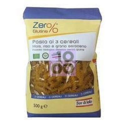 Il fiore di loto Zero% Glutine Pasta ai 3 cereali Pasta ai 3 cereali mais, riso e grano saraceno, formato fusilli senza glutine da agricoltura biologica. Ingredienti Farina di mais bio 60%; farina di riso bio 35%; farina di grano saraceno integrale bio 5%; acqua. Caratteristiche nutrizionali per 100 g Valore energetico 354 kcal 1503 k J Carboidrati di cui zuccheri 77 g 1, 5 g Proteine 7 g Grassi di cui acidi grassi saturi 1, 6 g 1 g Fibre alimentari 1, 6 g Sodio 0, 02 g Formato Confezione da 500 g. Cod. 1820