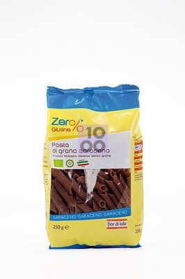 Il fiore di loto Zero% Glutine Penne Pasta di grano saraceno, formato penne senza glutine da agricoltura biologica. Ingredienti Farina di grano saraceno bio; acqua. Caratteristiche nutrizionali per 100 g Valore energetico 347 kcal 1472 k J Carboidrati di cui zuccheri 73, 6 g 0, 4 g Proteine 8, 4 g Grassi di cui acidi grassi saturi 2, 1 g 0, 5 g Fibre alimentari 3 g Sodio 0, 00068 g Formato Confezione da 250 g. Cod. 1888
