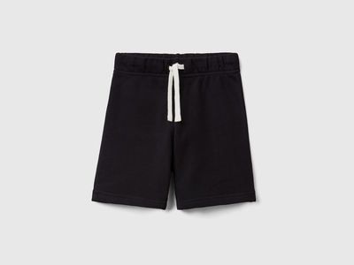 Benetton, Bermuda In Felpa 100% Cotone Bio, Size 82, Nero, Bambini