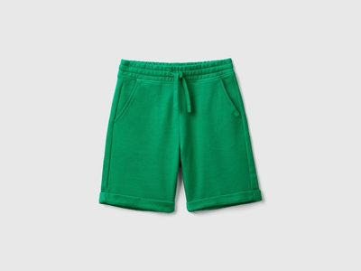 Benetton, Bermuda In Felpa Di Puro Cotone, Size 2XL, Verde,