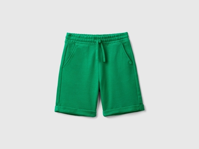 Benetton, Bermuda In Felpa Di Puro Cotone, Size 3XL, Verde,