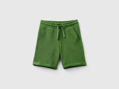 Benetton, Bermuda In Felpa Di Puro Cotone, Size 3XL, Verde