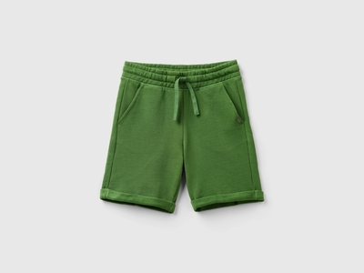 Benetton, Bermuda In Felpa Di Puro Cotone, Size L, Verde Militare,
