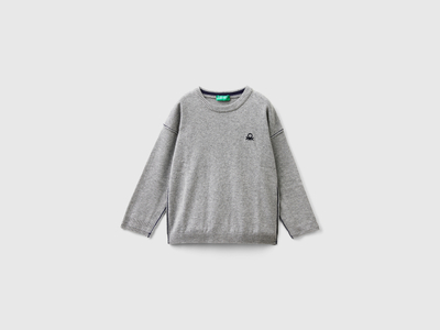Benetton, Maglia Girocollo Con Ricamo, Size 104, Grigio Chiaro,