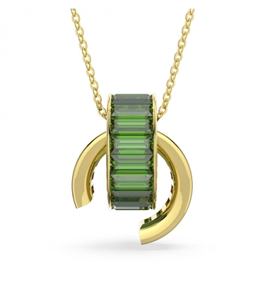 Swarovski collana 5639629 Collana da donna realizzata in lega di metalli con finitura dorata; pendente a doppia elica dalle dimensioni di 2, 4 cm x 2 cm con cristalli swarovski verdi taglio baguette. Lunghezza di 65 cm; chiusura con moschettone. Appartiene alla collezione Matrix. L'articolo è venduto su concessione ufficiale e viene spedito in tutto il mondo completo di confezione e shopper originali e garanzia autentica valida 24 mesi.