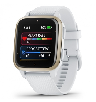 Garmin smartwatch 010-02701-11 Smartwatch con cassa squadrata in fibra di polimero fibrorinforzato dalle dimensioni di 40, 6 mm x 37 mm e spessore di 11 mm. Lunetta in alluminio anodizzato color crema. Ha display AMOLED a colori da 1, 41'' con risoluzione 320 x 360 pixel e modalità always on disponibile. Vetro con lente Corning® Gorilla® Glass 3. Fondello con cardiofrequenzimetro Elevate™ Cinturino quick release in silicone bianco largo 20 mm; chiusura con fibbia ardiglione. Resistente all'acqua fino a 50 metri di profondità.GPS integrato e sistemi Glonass & Galileo; sensori di bussola, accelerometro, termometro e sensore della luce ambientale. Diverse le funzioni di monitoraggio della salute, tra queste: misurazione costante della frequenza cardiaca con report a riposo e sulle anomalie, saturazione di ossigeno nel sangue, monitoring del sonno e dello stress, idratazione e monitoraggio della salute della donna. Connettività Bluetooth® e ANT®. Compatibile con le app Garmin Connect con android e i OS. Notifiche dello smartphone. Datario, meteo, funzione "find my phone". Controllo della musica tramite le più imporanti app di streaming musicale. Integrate funzioni di segnalazione emergenza e rilevamento incidenti. Numerose le funzioni fitness con oltre 25 app sport precaricati e personalizzabili. Memoria e analisi degli allenamenti. La batteria ha durata di circa 11 giorni in modalità smartwatch; fino a 26 ore con GPS attivo.
