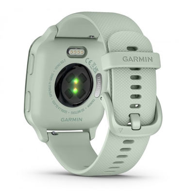Garmin smartwatch 010-02701-12 Smartwatch con cassa squadrata in fibra di polimero fibrorinforzato dalle dimensioni di 40, 6 mm x 37 mm e spessore di 11 mm. Lunetta in alluminio anodizzato. Ha display AMOLED a colori da 1, 41'' con risoluzione 320 x 360 pixel e modalità always on disponibile. Vetro con lente Corning® Gorilla® Glass 3. Fondello con cardiofrequenzimetro Elevate™ Cinturino quick release in silicone verde menta largo 20 mm; chiusura con fibbia ardiglione. Resistente all'acqua fino a 50 metri di profondità.GPS integrato e sistemi Glonass & Galileo; sensori di bussola, accelerometro, termometro e sensore della luce ambientale. Diverse le funzioni di monitoraggio della salute, tra queste: misurazione costante della frequenza cardiaca con report a riposo e delle anomalie, saturazione di ossigeno nel sangue, monitoring del sonno e dello stress, idratazione e monitoraggio della salute della donna. Connettività Bluetooth® e ANT®. Compatibile con le app Garmin Connect con android e i OS. Compatibilità con assistente vocale. Notifiche dello smartphone. Datario, meteo, funzione "find my phone". Controllo della musica tramite le più imporanti app di streaming musicale. Integrate funzioni di segnalazione emergenza e rilevamento incidenti. Numerose le funzioni fitness con oltre 25 app sport precaricati e personalizzabili. Memoria e analisi degli allenamenti. La batteria ha durata di circa 11 giorni in modalità smartwatch; fino a 26 ore con GPS attivo.