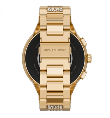 Michael Kors smartwatch MKT5146 Smartwatch con sistema operativo Wear OS by Google, compatibile con Android OS 6.0 o + e i OS 12 o + tramite app Wear OS by Google. Connettività Bluetooth 5.0+. NFC e connettività Wi-Fi. Integrati NFC e GPS. Memoria RAM di 1 GB con spazio di archiviazione da 8 GB. Cassa rotonda in acciaio inox con finitura dorata dal diametro di 44 mm. Lunetta con cristalli bianchi. Display AMOLED full-touchscreen a colori con area attiva da 1.28" con risoluzione 416 x 416 / 326 PPI. Quadranti personalizzabili con complicazioni. Cinturino in acciaio anallergico color oro largo 22 mm e impreziosito da zirconi bianchi; chiusura deplyante con pulsanti. Integrati altoparlante per le telefonate, microfono e sistema di vibrazione per notifiche. Sensori di accelerometro, altimetro, regolazione automatica della luminosità, bussola, giroscopio, cardiofrequenzimetro al fondello e sensore Sp O2 per controllo della saturazione. Funzioni di activity tracker per il fitness e i tuoi allenamenti con Google Fit. Funzioni di notifica, sveglia e sincronizzazione Wi Fi, controllo remoto della musica. Durata della batteria migliorata fino a 24 ore (a seconda dell'utilizzo e gli aggiornamenti). Resistente all'acqua fino a 30 metri di profondità.L'articolo è venduto su concessione ufficiale e spedito in tutto il mondo completo di caricabatterie magnetico, confezione e garanzia autentici.