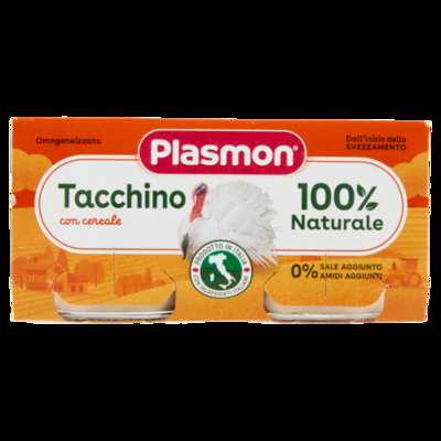 Plasmon omog tacchino 120gx 2pz Plasmon TACCHINO Omogeneizzato con carne di tacchino e cereale.