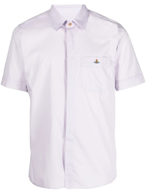 Camicia lavanda Classica di Vivienne Westwood a maniche corte in cotone con colletto classico, logo ricamato sul petto, chiusura frontale con bottoni e orlo dritto.