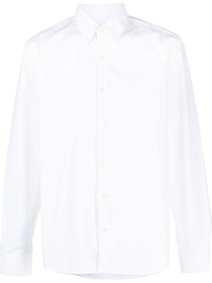 Camicia bianca Curle di Dries Van Noten a maniche lunghe in cotone con colletto classico, chiusura frontale con bottoni e orlo curvo.