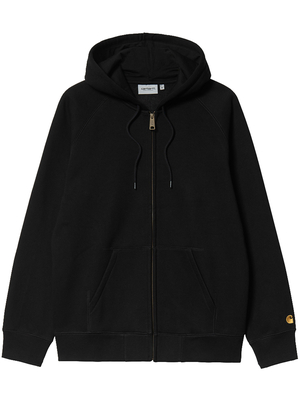 Giacca nera Hooded Chase di Carhartt Wip in cotone con cappuccio, chiusura frontale con zip, logo ricamato a fondo manica e tasche frontali.