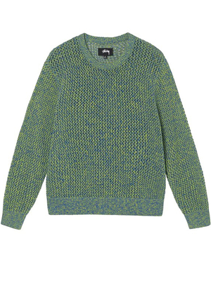 Maglione verde 2 Tone Loose di Stussy in cotone con girocollo, lavorazione a maglia e polsini e orlo elasticizzati a costine.
