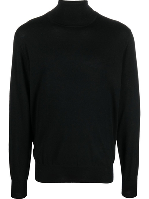 Maglione nero Aspesi in lana vergine con collo alto, maglia fine e orlo a coste.