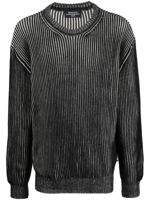 Maglione grigio Boris di Etudes in cotone biologico e lana con girocollo, lavorazione a coste, effetto sbiadito e maniche a spalla bassa.