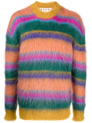 Maglione multicolore Fuzzy di Marni in mohair con girocollo, motivo a righe orizzontali e orlo dritto.