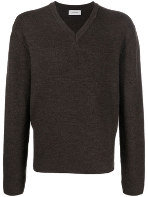 Maglione marrone Lemaire in lana con scollo a V, design lavorato a maglia e orlo dritto.