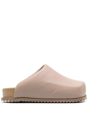 Sandali beige Truck Slide di Yume Yume in pelle cruelty-free con punta quadrata, design senza aperture, soletta con logo e suola in gomma antiscivolo.