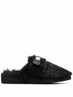 Sandali neri Zavo-2EU di Suicoke in acrilico con punta tonda, chiusura frontale a strappo e suola in gomma.