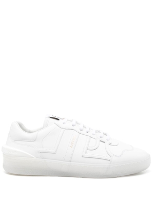 Sneakers bianca Clay Low Top di Lanvin in pelle con punta tonda, chiusura frontale con lacci, logo laterale e suola piatta in gomma.