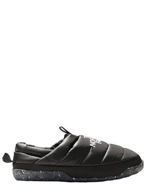 Sneakers nere Nuptse di The North Face modello pantofola con imbottitura in piuma d'oca, logo bianco frontale, suola in gomma e linguetta posteriore.