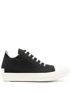 Sneakers nere Ramones di Rick Owens DRKSHDW in tessuto con punta bianca in pelle, chiusura frontale con lacci, occhielli laterali e suola piatta in gomma.