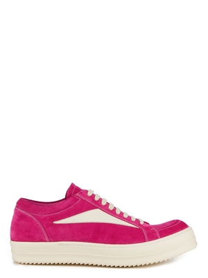 Sneakers rosa Vintage Sneaks di Rick Owens in pelle scamosciata con punta tonda, chiusura frontale con lacci pearl, dettaglio laterale e suola piatta in gomma.