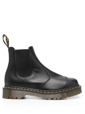 Stivali neri unisex 2976 Bex Toe Cap di Dr. Martens in pelle con punta tonda, iconiche cuciture gialle, fascia elastica laterale, design senza chiusure e suola piatta in gomma antiscivolo.