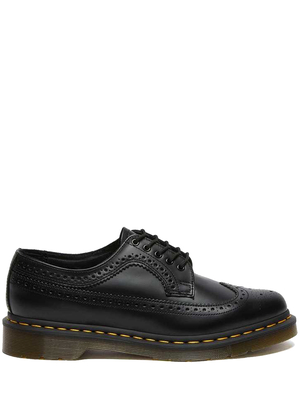 Stringate nere 3989 di Dr. Martens in pelle con punta tonda, chiusura frontale con lacci, iconische cuciture gialle e suola antiscivolo.