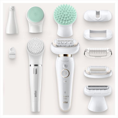 Epilatore elettrico donna Braun Silk-épil 9-705 con testina larga per un?epilazione ultra rapida. Goditi settimane di pelle liscia grazie alla tecnologia Micro Grip del depilatore donna e a una testina più ampia del 40% che rimuove i peli corti fino a 0, 5 mm. La testina del rasoio elettrico donna e quella del rifinitore ti offrono opzioni supplementari per le aree sensibili e l?epilatore donna è impermeabile al 100%, ciò significa che puoi usarlo nella vasca o sotto la doccia, per un?esperienza praticamente indolore. ...