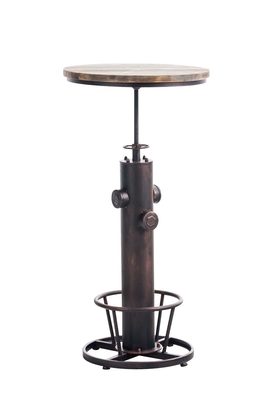 - 123 cm, tavolo design in legno e metallo, tavolino da locale in legno Tavolino da appoggio Ruhr Questo particolarissimo tavolinorealizzato in perfetto stile industriale, con telaio a forma di idrante. Tubi, linee squadrate e decise sono infatti tipiche di questo stile di tendenza, che si ispira ai loft newyorkesi e che impazza ormai nei pub alla moda e nelle case pi chic. Il ripiano del tavolorealizzato in legno massiccio di pino, il telaio si presenta invece in robusto metallo. Il tavolino da barregolabile in altezza, per adattarsi a qualsiasi superficie di tavolino o bancone. La struttura del tavolino tondorobusta e in grado di offrirti un complemento di arredo davvero insostituibile. Misure ca: Larghezza totale: 60 cm Profondit totale: 60 cm Altezza complessiva: 100123 cm Spessore ripiano tavolo: 3 cm Altezza poggiapiedi: 26