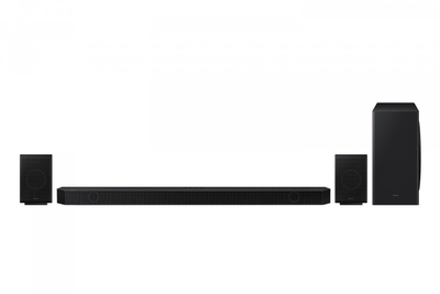 Immersione sonora di livello superiore Le 4 caratteristiche principali ? Wireless Dolby Atmos Primo Dolby Atmos wireless su tv Samsung al mondo ? Vero audio a 9.1.4 canali Immergiti in un suono sbalorditivo ? Q-Symphony TV e soundbar in perfetta armonia ? Space Fit Sound Audio perfettamente calibrato in base ai tuoi spazi Primo Dolby Atmos wireless al mondo che connette Smart tv e soundbar Samsung Dolby Atmos wireless Il formato audio Dolby Atmos, basato sugli oggetti, è per la prima volta integrato in modalità wireless nelle soundbar Samsung. Goditi l?effetto sinergico creato dai contenuti audio 3d di Dolby Atmos e dalla soundbar ? il tutto senza cavi. Immergiti in un suono sbalorditivo Vero audio a 9.1.4 canali Con 9 canali frontali e surround, 1 subwoofer 4 canali rivolti verso l?alto, la soundbar diffonde un suono avvolgente. e grazie ai nuovi altoparlanti posteriori, il suono viaggia e si riflette sul soffitto, amplificando l?effetto di audio surround ? un complemento