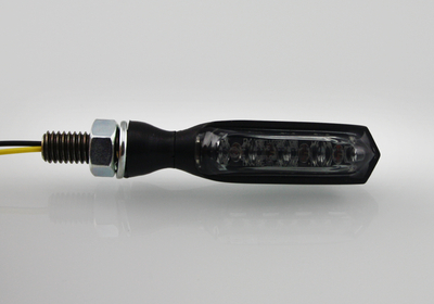 Pathbreaking: Questo indicatore a LED PROTECH nel design sportivo sottile utilizza 4 LED per indicare la direzione. La cassa in plastica nera opaca è di 47 mm e l'indicatore flessibile braccio 12 mm di lunghezza. Con EG-BE. articolo: Indicatore LED PROTECH RC-90 alluminio/zinco nero, nero