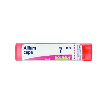 Boiron Allium Cepa 7CH granuli è un rimedio omeopatico preparato a partire dalla Cipolla, una pianta erbacea della famiglia delle Liliacee. La Tintura Madre si prepara dal bulbo. Le azioni principali ascritte riguardano l'apparto respiratorio, l'apparato digerente, il sistema nervoso. Formato: Tubo con 80 granuli dal peso di 4g. Boiron Allium Cepa 7CH granuli è un rimedio omeopatico preparato a partire dalla Cipolla, una pianta erbacea della famiglia delle Liliacee. La Tintura Madre si prepara dal bulbo. Le azioni principali ascritte riguardano l'apparto respiratorio, l'apparato digerente, il sistema nervoso. Azione L'azione generale riguarda: Apparato respiratorio Sistema nervoso Apparato digerente Quando è utilizzato L' Allium Cepa è utilizzato come rimedio omeopatico in caso di: Causalità: virus o allergeni; Sensazione di irritazione laringea; Aggravamento con il calore e durante la primavera; miglioramento all'aria aperta; Principali Indicazioni Cliniche Boiron Allium Cepa...