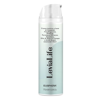 Levia Life Descrizione Crema che, grazie al suo innovativo mix di ingredienti, come ceramidi note per le proprietà idratanti ed emollienti, fitosfingosina, ginseng, Portulaca oleracea, squalano, olio di semi di canapa (ricco di acidi grassi polinsaturi a lunga catena omega 3 e omega 6) e acidi grassi essenziali liberi, svolge un'azione lenitiva e protettiva contribuendo al benessere della cute. Dermatologicamente testato. Modalità d'uso Applicare il prodotto sulla zona interessata almeno due volte al giorno e massaggiare fino a completo assorbimento. Componenti Aqua, Butyrospermum parkii butter, cetearyl alcohol, glyceryl stearate, Cannabis sativa seed oil, potassium palmitoyl hydrolyzed wheat protein, acetylated glycol stearate, squalane, Panax ginseng root extract, Portulaca oleracea extract, linoleic acid, phytosphingosine, ceramide NP, ceramide AP, ceramide EOP, cholesterol, glycerin, behenyl alcohol, palmitic acid, stearic acid, lauryl alcohol, cetyl alcohol, ethylhexylg...