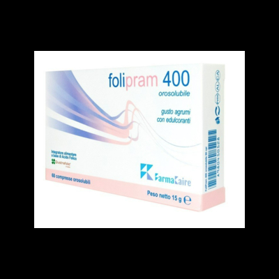 folipram 400 Descrizione Integratore alimentare a base di acido folico. Il folato interviene nel processo di divisione delle cellule e contribuisce alla crescita dei tessuti materni in gravidanza, alla normale sintesi degli amminoacidi e alla normale emopoiesi. Inoltre il folato contribuisce alla riduzione della stanchezza e dell'affaticamento e alla normale funzione psicologica e del sistema immunitario. Ingredienti Edulcoranti: xilitolo, sucralosio, acesulfame K; agenti di carica: cellulosa microcristallina, amido di mais; aromi; agenti antiagglomeranti: sali di magnesio degli acidi grassi, biossido di silicio, talco; acidificante: acido citrico; Quatrefolic [acido (6S)-5-metiltetraidrofolico, sale della glucosammina], L-metilfolato di calcio. Senza glutine, lattosio e senza zuccheri. Caratteristiche nutrizionali Valori medi per 1 compressa %VNR* Acido folico 400 mcg 200% *VNR: Valori Nutritivi di Riferimento Modalità d'uso Assumere 1 compressa al giorno, da s...