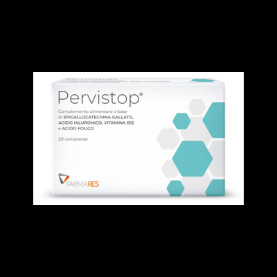 Pervistop Descrizione Complemento alimentare a base di epigailocatechina gallato (EGCG), acido ialuronico, vitamina B12 e acido folico, utile per apportare una"a integrativa di tali sostanza in caso di ridotto apporto con la dieta o di aumentato fabbisogno. La vitamina B12 e l'acido folico intervengono nel processo di divisione delle cellule e contribuiscono alla normale funzione del sistema immunitario. Ingredienti Tè verde (Camellia sinensis L. Kuntze) foglie e.s. tit. 45% inepigallocatechina gallato (EGCG); agente di carica: cellulosa microcristallina; sodio ialuronato; agenti antiagglomeranti: biossido di silicio, sali di magnesio degli acidi grassi; idrossipropilcellulosa, vitamina B12 (cianocobalamina), acido folico (L-metilfolato di calcio). Caratteristiche nutrizionali Valori medi 1 compressa %VNR* Tè verde tit. 45% in epigallocatechina gallato (EGCG) 444, 5 mg 200 mg Acido ialuronico 50 mg Vitamina B12 1 mg 40.000% Acido folico 400 mcg 200% *VN...
