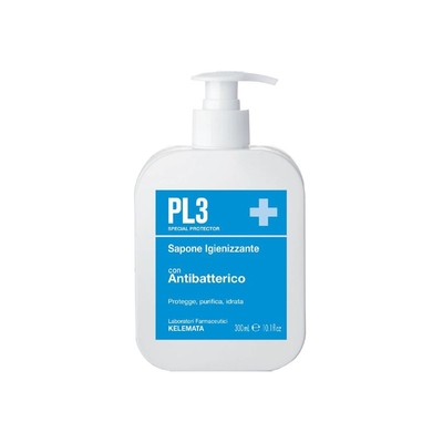 PL3 Sapone Igienizzante con Antibatterico Descrizione Sapone igienizzante per le mani e per il corpo. Formula con eucaliptolo dalle naturali proprietà antibatteriche che assicura un'azione igienizzante rapida e delicata. Arricchito con acqua virginiana e glicerina vegetale, idrata e protegge. indicato per tutte le pelli, anche le più secche e sensibili. Conservazione Validità post-apertura: 12 mesi. Formato Capacità: 300 ml. Cod. 70166