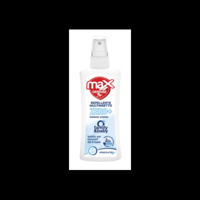 Safety Prontex Max Defense 0+ Insetto repellente Spray Zero+ Spray Zero+ Efficace per i più piccoli. Repellente Multinsetto Spray Zero+ di Prontex, sicuro per i neonati fin dai primi giorni di vita. Zero+ è una delicata lozione crema repellente per insetti, appositamente formulata per proteggere la pelle dei più piccoli. Testata in laboratorio, la sua efficacia è stata dimostrata nel respingere zanzare per un periodo fino a 8 ore e zecche per fino a 7 ore, offrendo una protezione affidabile e a lunga durata. Pratica e pronta all'uso, questa lozione cutanea è l'alleato ideale per proteggere i bambini dai fastidi causati dagli insetti durante le loro prime avventure all'aria aperta. Formato: Flacone da 75 Ml